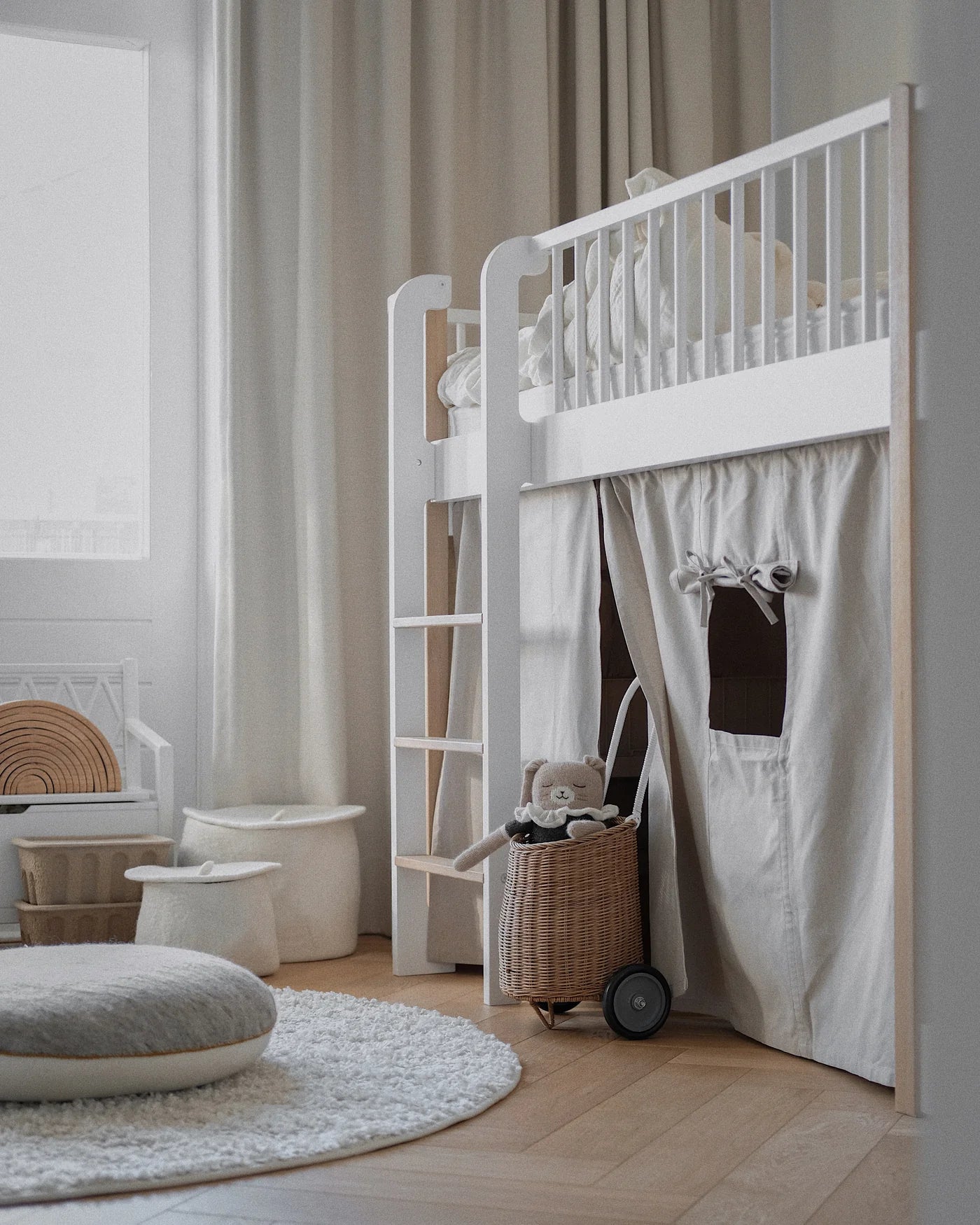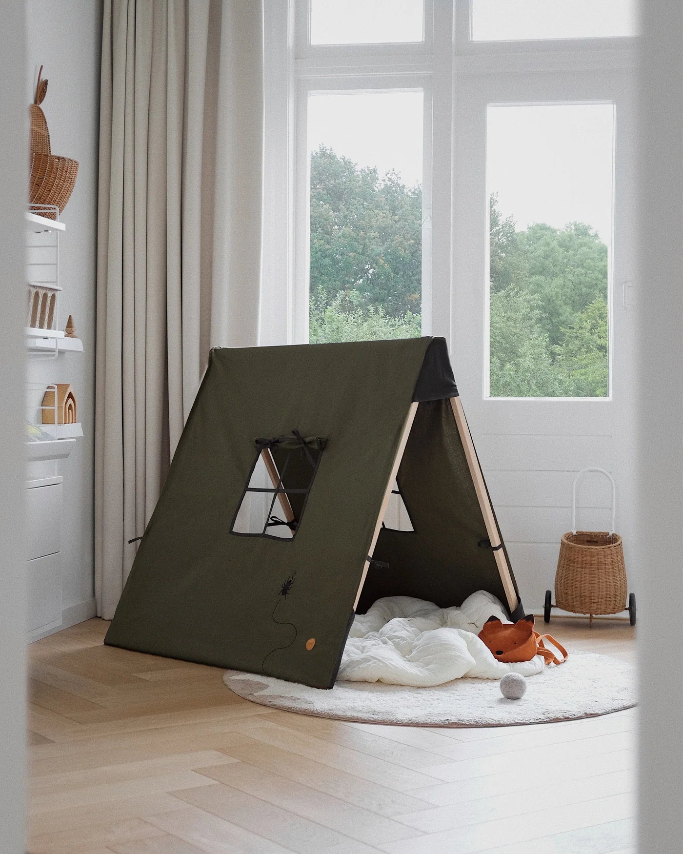 kids are free to add their touches! I'm also focusing on soft products to create a cosy atmosphere. I try not to overload the shelves with toys and teach my children to put their things in boxes. Boxes are always a nice idea for rediscovering forgotten toys!"