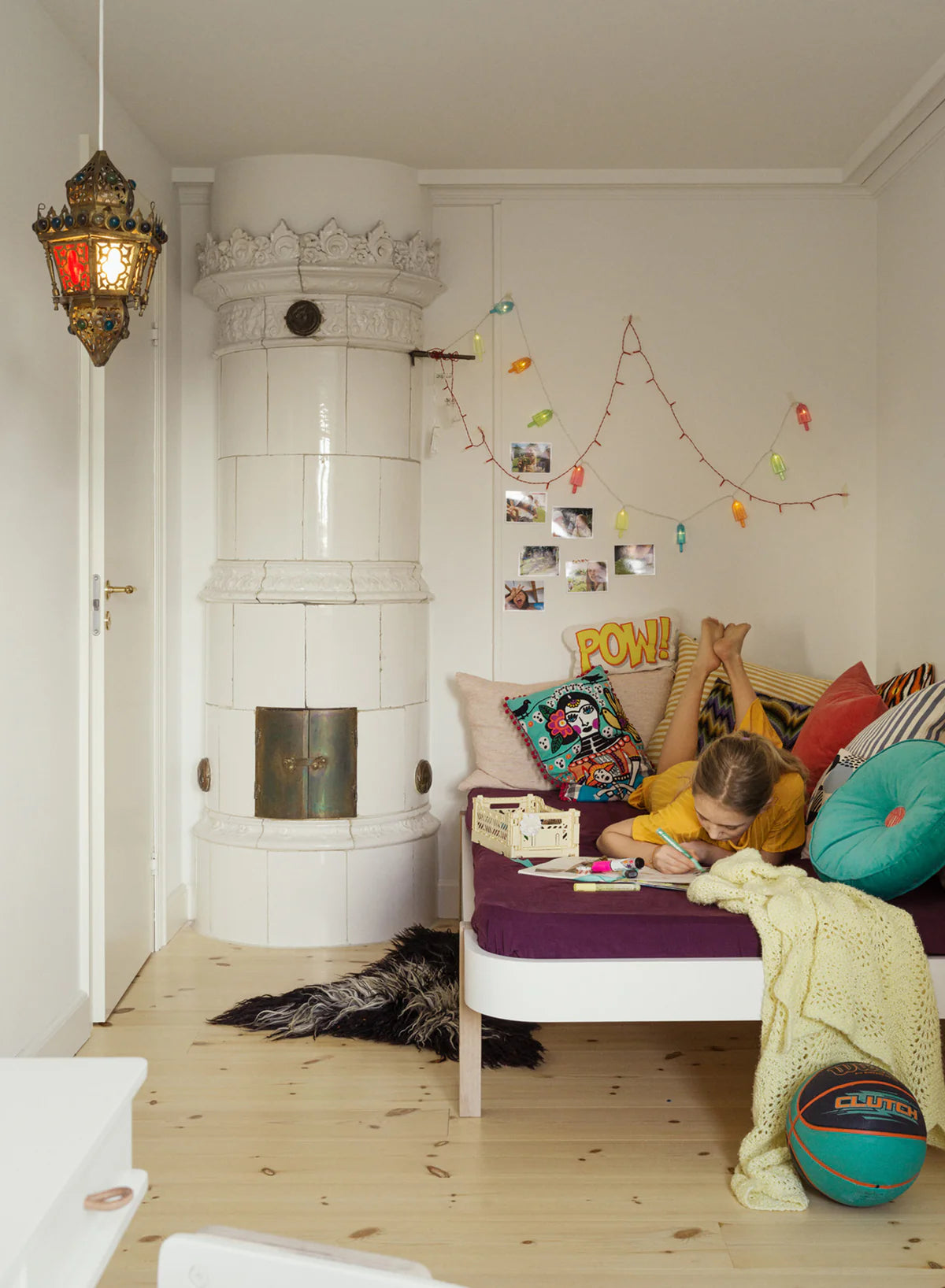 "We're the type of people whose decorating is a constant process, always moving. We're not afraid of trying new things, which I think has to do with our jobs. We both work with clients, creating specific looks for them, and we get influenced and inspired and bring that home with us. What's the worst that can happen, really? If we don't like it, we just redo it," Anders notes. The girls each have their own room, which was a big priority for Anders and Katja. They have chosen three different beds from the same brand to make them more personal, each with different expressions and matching their daughters' personalities and ages. For instance, Marta, being the oldest, has gotten a bigger bed that serves many functions. "This is a bed that will last many years and one that she can bring with her when the time comes. As for now, besides sleeping in it, she uses it as sort of a lounge area, hanging out with friends, watching movies and having sleepovers," Anders explains and continues: "They all need their own space. Like today, when Bibbi came home from kindergarten, she went to her room and closed the door for half an hour. She does that sometimes, just needing a little peace and quiet after a day being surrounded by other kids."