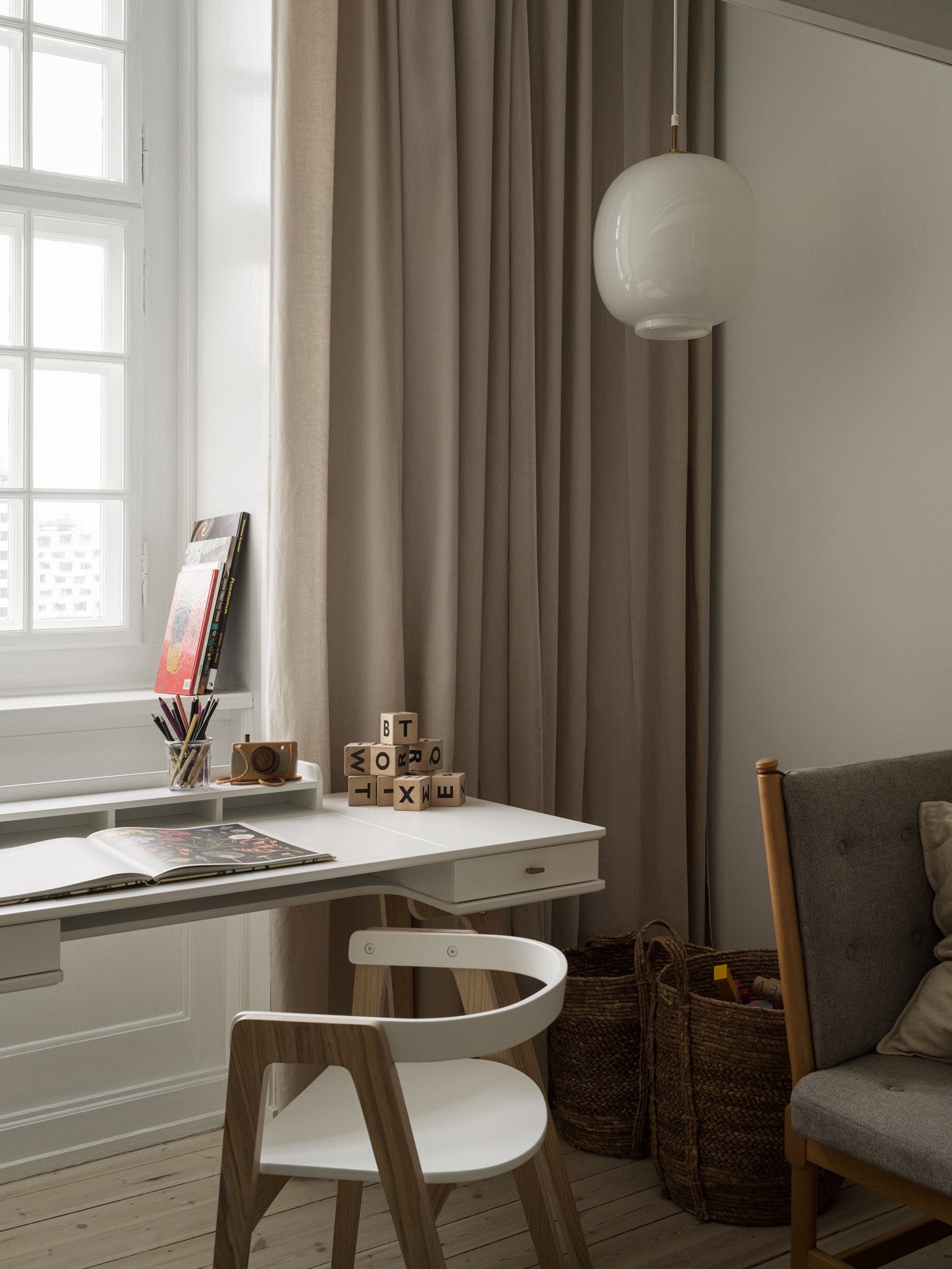 This apartment building is unique because it used to be former Danish Prime Minister Thorvald Stauning’s home back in the first half of the 1900s, and it’s therefore listed. Before moving into the apartment two years ago, the family lived in another listed area in Copenhagen – the famous Kartoffelrækkerne – originally an old working-class. “We were familiar with the rules of living in a listed building and were actively looking for an older place with some soul. Not many families make a move from a house to an apartment, but living on four floors with two little kids was not the most practical,” Line explains.