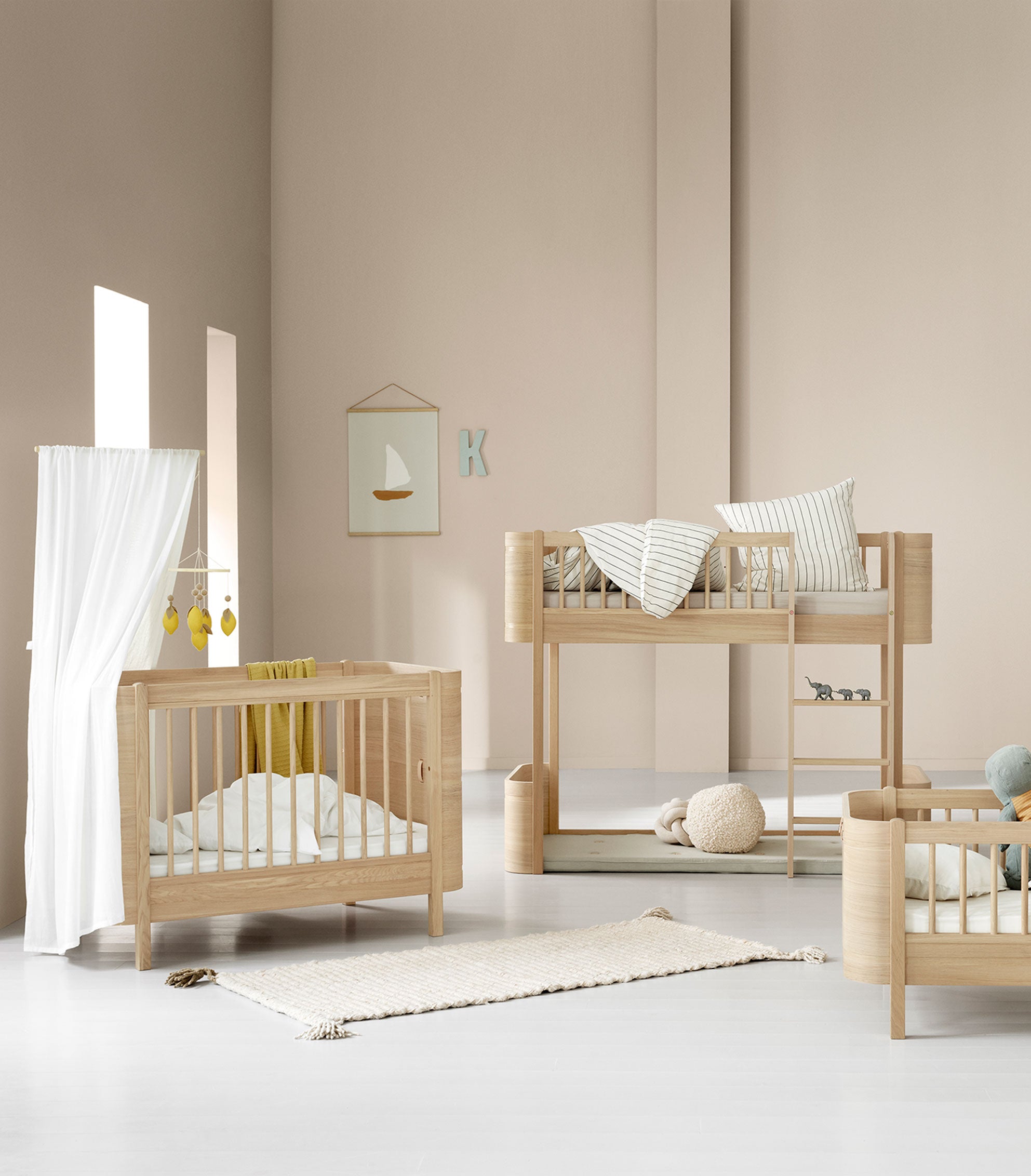 The Wood Mini+ bed series is designed to follow your child's sleeping needs from baby to nine years old. As your needs change - a child outgrows their bed, wants a new one, or perhaps the family expands - the bed can grow with your new needs.